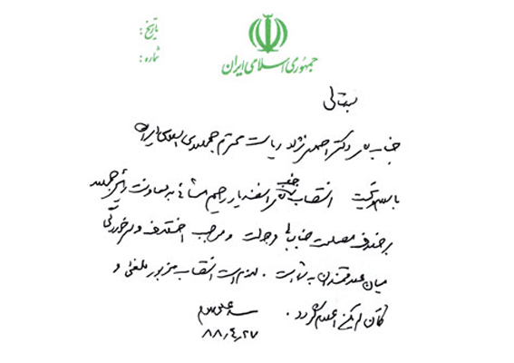 آقای دکتر محمود احمدی نژاد ریاست محترم جمهوری اسلامی ایران، با سلام و